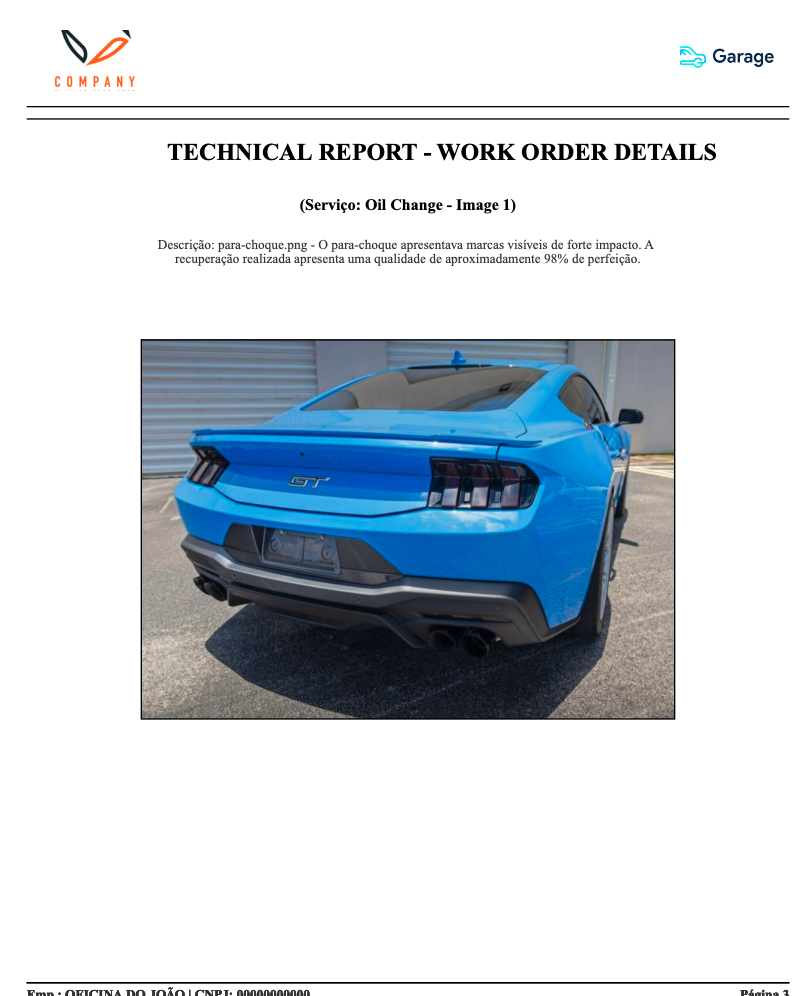 Le Rapport Technique est un document professionnel généré directement dans le système Garage, qui regroupe les informations de l’ordre de service avec photos, descriptions détaillées et observations sur le véhicule. Il peut être remis au client comme preuve de transparence et de qualité du service fourni.